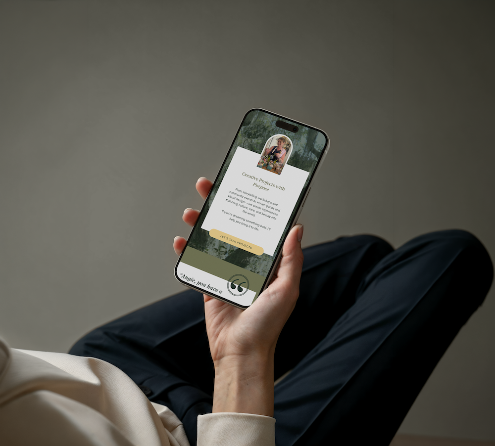 Angie came to us looking to create a personal brand that felt both welcoming and grounding, which was a direct reflection of the experience she strives to provide for her clients. Together, we developed a refined brand identity and custom website designed to elevate her presence while remaining warm and approachable. The website was thoughtfully structured to allow clients to easily book her consulting services or order her curated boxes featuring unique goods from local Charleston businesses.