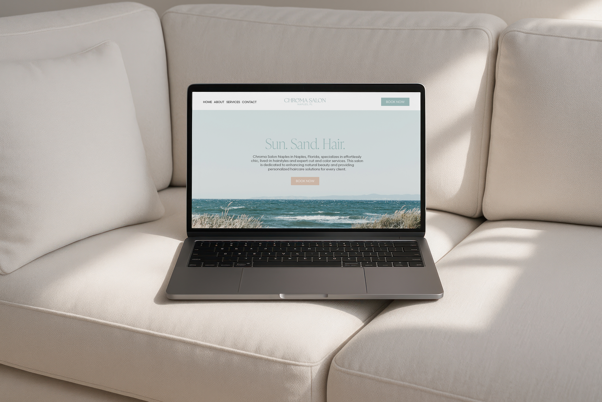 Corina, owner of Chroma Salon in Naples, Florida, was in the process of elevating her brand as she began serving a more high-end clientele. She wanted her visuals to reflect the refined, coastal atmosphere of her salon. We created a coastal-inspired brand identity designed to feel both polished and inviting… positioning Chroma Salon with a brand that reflects the elevated experience she provides her clients.
